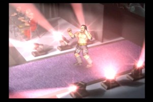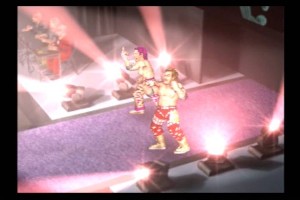 ハルクをリング外に追放すると残ったサクラギ、直江の前に立ち、自身の所持する