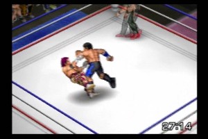ロープに救われたがその直後に抱え上げて入魂のパワーボム!