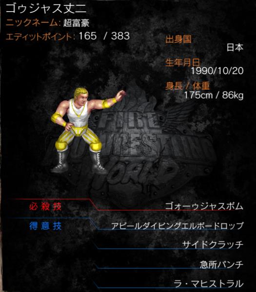 リングネーム「ゴゥジャス丈二」、ニックネーム「超富豪」、必殺技「ゴォーゥジャスボム」……