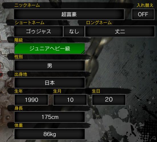 「名前(リングネーム)」「ニックネーム」「必殺技」このあたりでしょうか。
