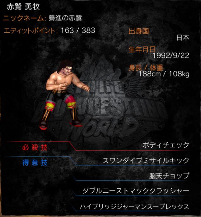 | 得意技 | スワンダイブミサイルキック トマホークチョップ(脳天チョップ) プリンスズスロウン (ダブルニーストマッククラッシャー) 樽前山ジャーマンスープレックスホールド (ハイブリッジジャーマンSH) |