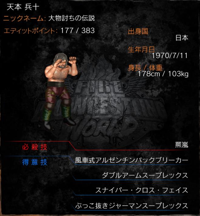 | 必殺技 | 羆嵐(ハリケーンスラム) | |