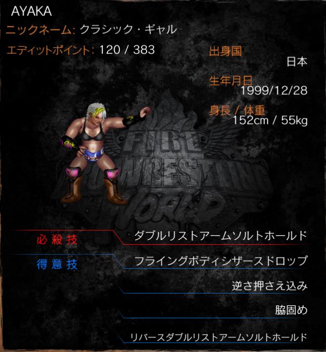 | 必殺技 | ダブルリストアームソルトホールド | |