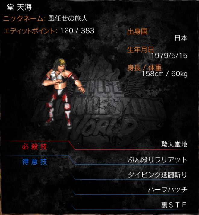| 必殺技 | 驚天堂地 (トーチャーラックボム) |