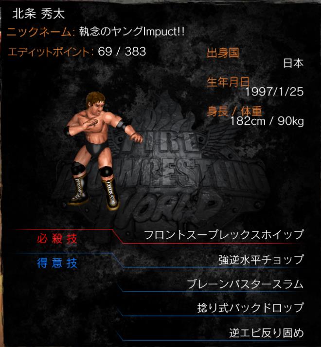| 必殺技 | フロントスープレックスホイップ | |