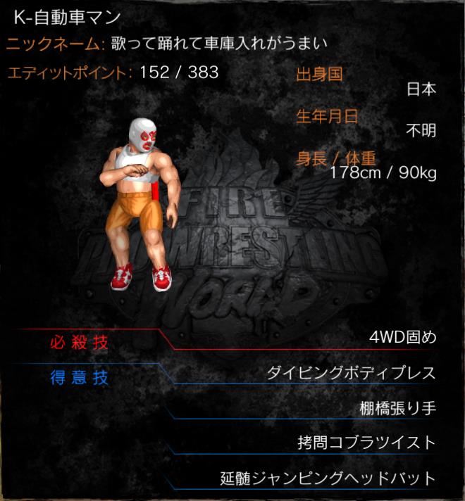 | 必殺技 | 4WD固め (足4の字固め) |