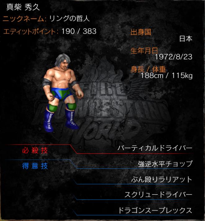 | 得意技 | 逆水平チョップ ぶん殴りラリアット 裏バーティカルドライバー (スクリュードライバー) ドラゴンスープレックス |