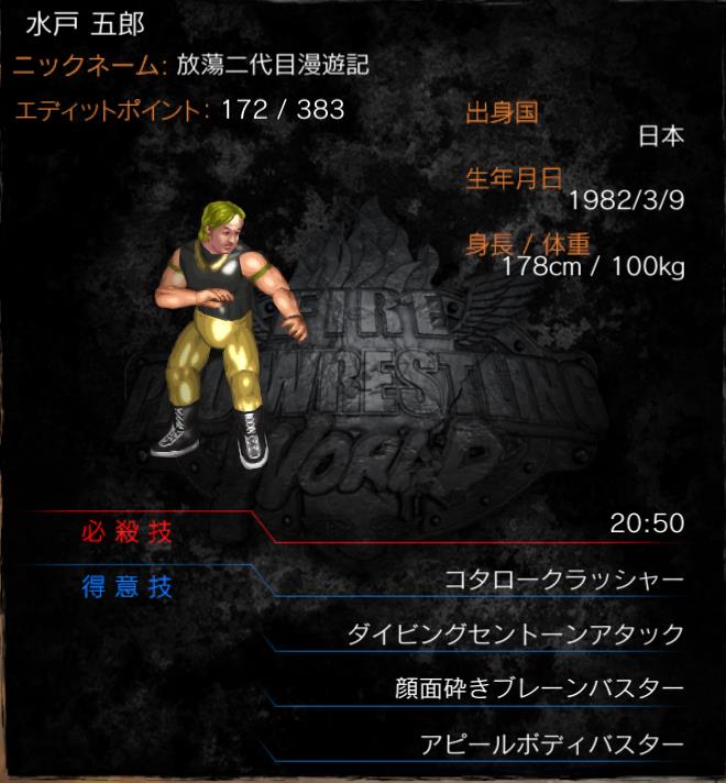 | 必殺技 | 20:50 (ボトムドロップ) |