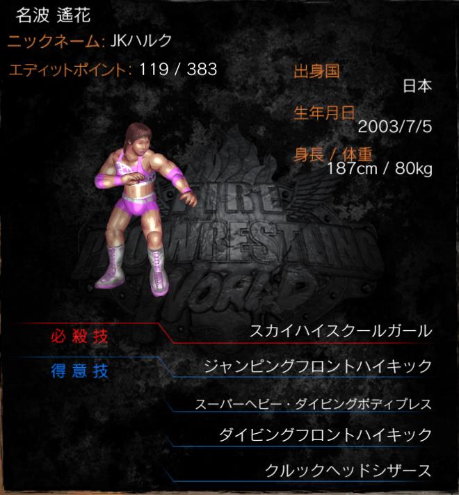 | 必殺技 | スカイハイスクールガール (シットダウンファイナルパワーボム) |