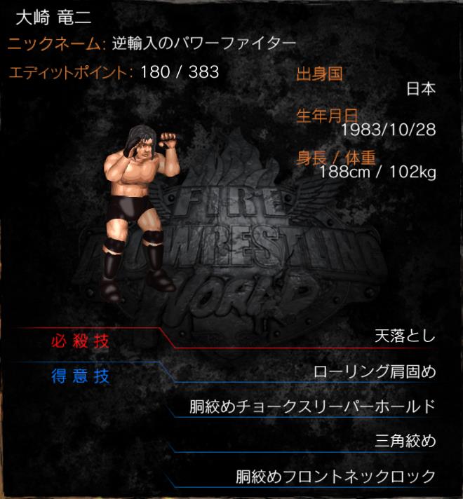 | 得意技 | ローリング肩固め 胴締めチョークスリーパーホールド 三角締め 胴締めフロントネックロック |