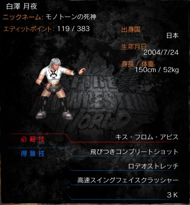 | 得意技 | 飛びつきコンプリートショット ロデオストレッチ 高速スイングフェイスクラッシャー モノトーン・ローズガーデン (3K) |